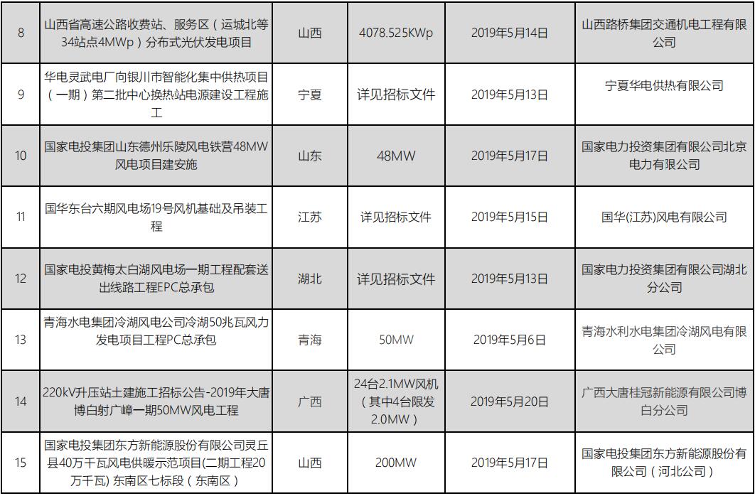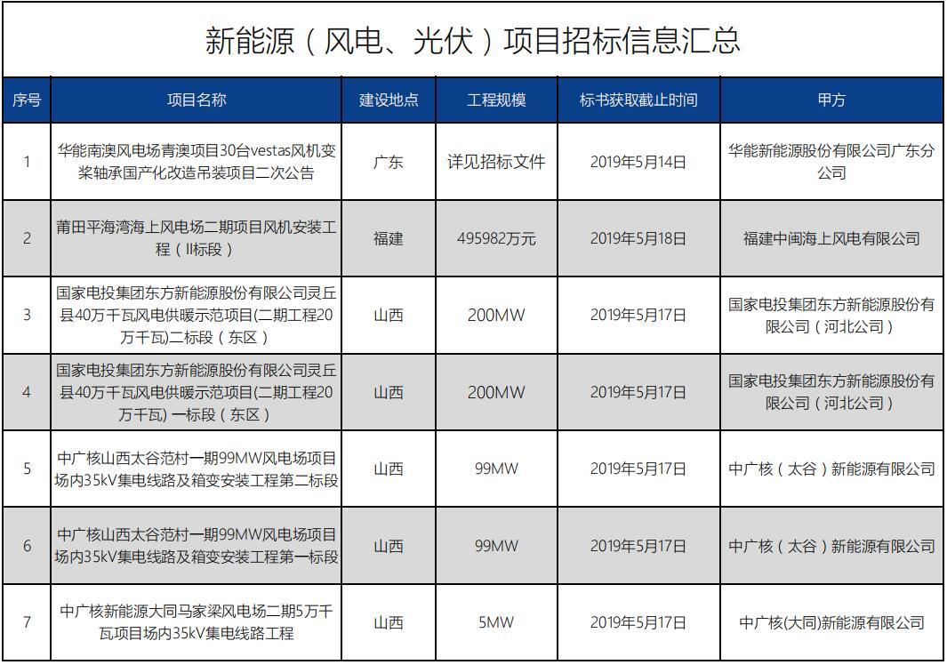 招標(biāo)信息丨5月新能源(光伏、風(fēng)電)項(xiàng)目(5月01期)