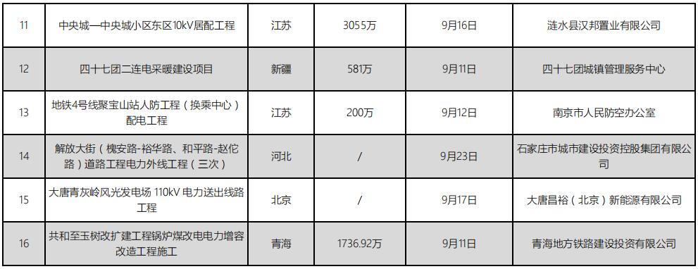 招標(biāo)信息丨電力工程項(xiàng)目(9月第1期)