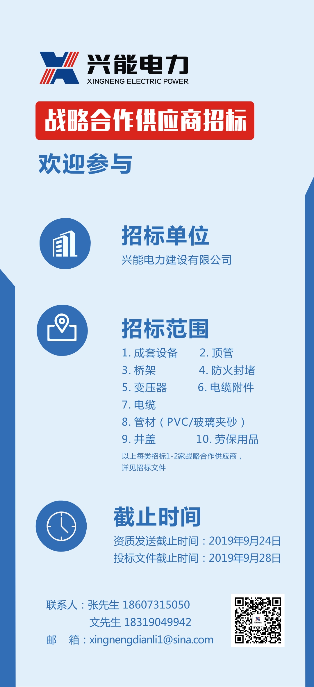 項目名稱:戰(zhàn)略合作供應(yīng)商招標-2019年9月興能電力建設(shè)有限公司