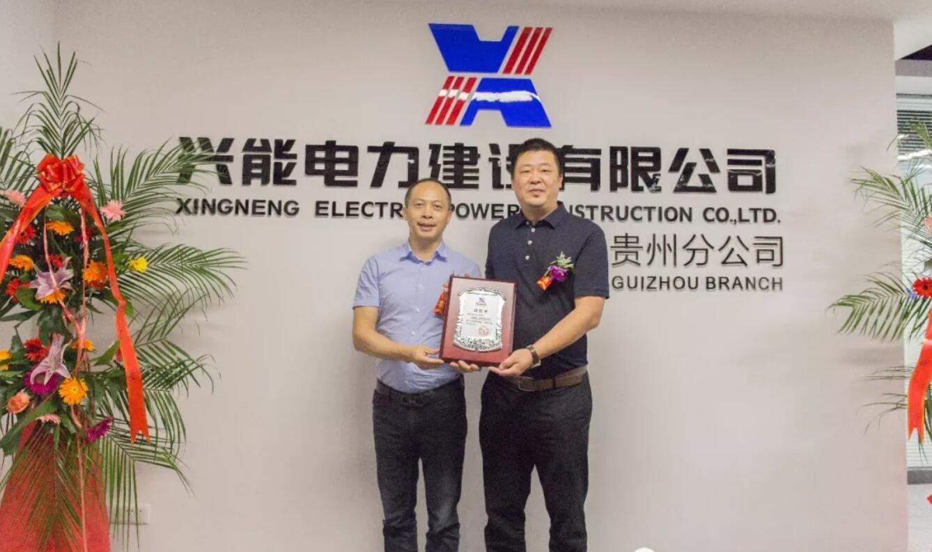 分公司總經(jīng)理陳平先生邀請(qǐng)劉永青董事長(zhǎng)共同揭開(kāi)了“興能電力建設(shè)有限公司貴州分公司”的牌匾,興能電力貴州分公司在所有嘉賓與家人的共同見(jiàn)證之下正式掛牌成立。