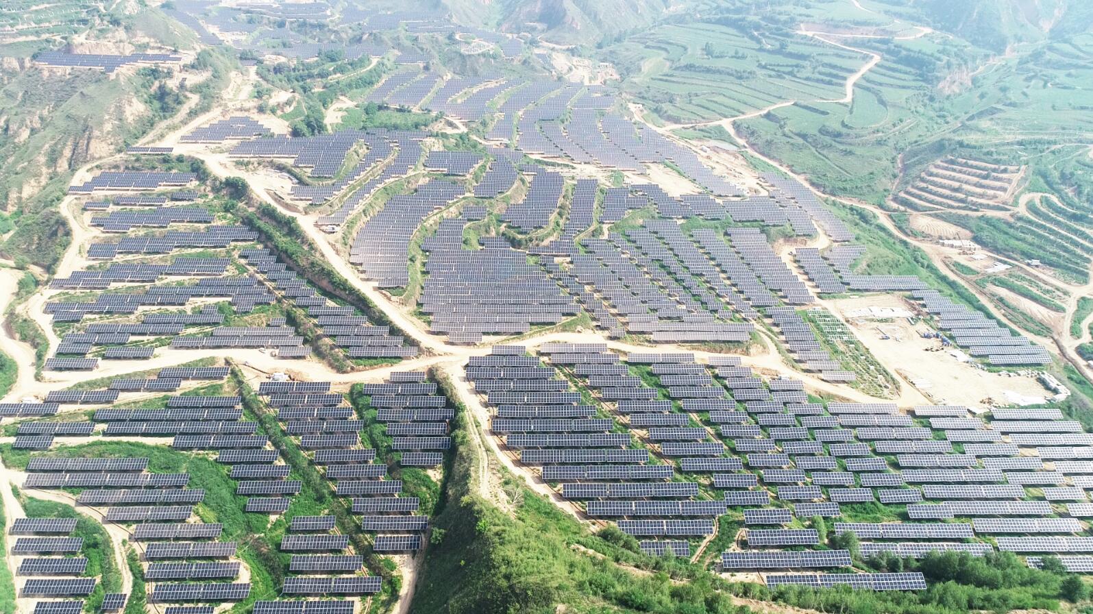 如今昔日的黃土大溝已大變樣,藍天白云下,高低錯落的山坡上,幾萬片藍色光伏板沿山坡斜鋪開,已然成為了黃土高坡上一道獨特美麗的“藍色海洋”。