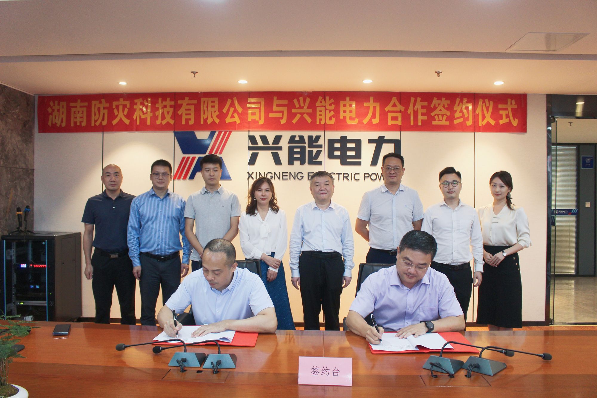 簽約儀式上,湖南防災科技有限公司執(zhí)行董事李波與興能電力建設(shè)有限公司董事長劉永青分別代表雙方簽訂合作框架協(xié)議。