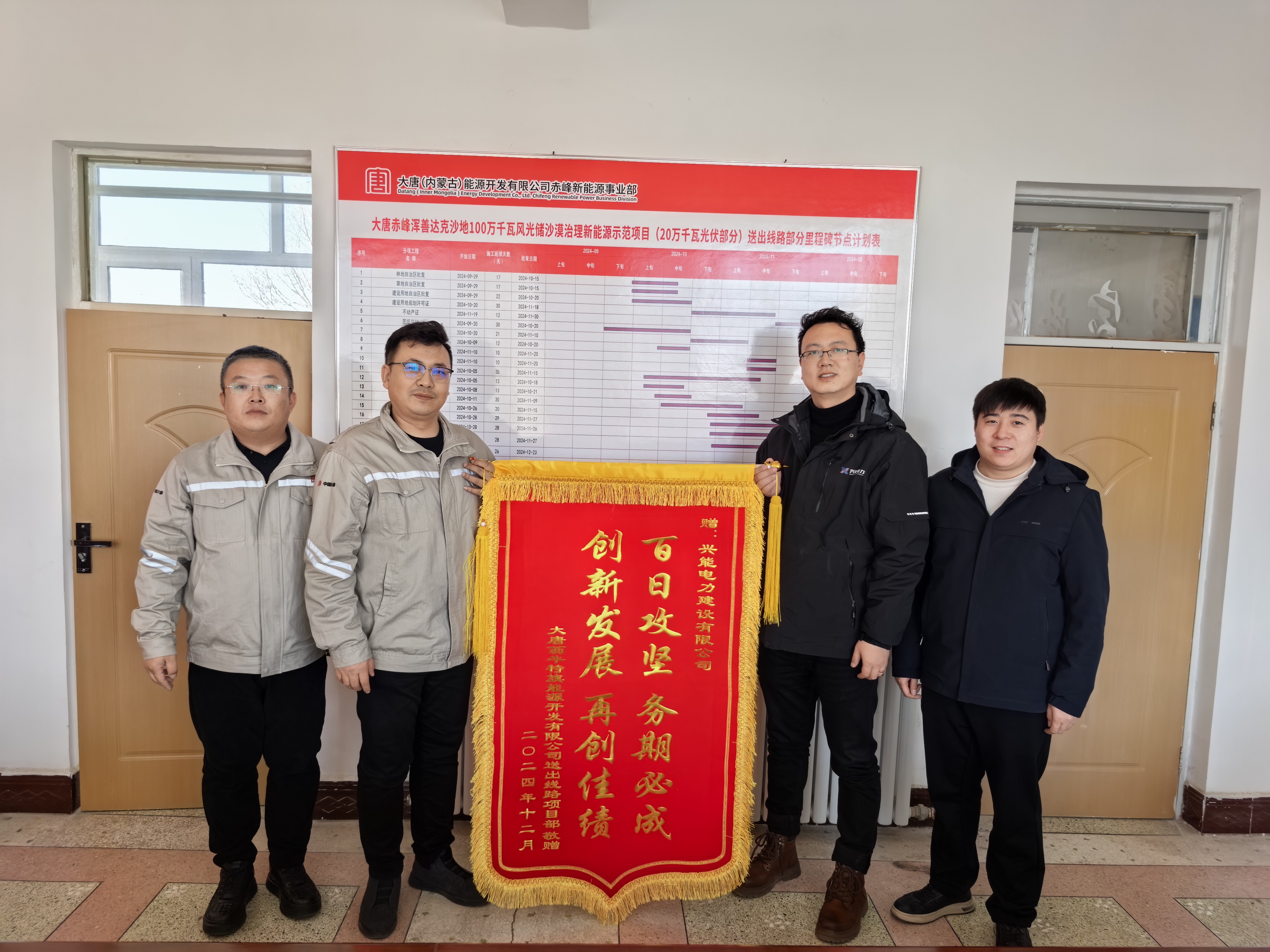 赤峰渾善達(dá)克沙地光伏送出線路圓滿竣工,獲贈業(yè)主錦旗