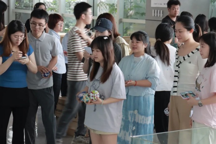 如果說(shuō)手工區(qū)流淌著靜水深流的溫情,那游戲區(qū)則澎湃著活力四射的聲浪?!搬烎兆印笨简?yàn)著耐心與巧勁,手腕輕抖間,一枚象征吉祥的“粽子”被穩(wěn)穩(wěn)釣起,引來(lái)一片喝彩。
